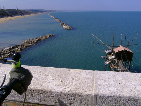 Mi rimane da ricordare che a Termoli, a causa degli strani e a volte sconvenienti (partenze in salita) sensi unici, oltre che naturalmente alla mia completa mancanza di orientamento, cercando di prendere la via per Pescara mi sono invece ritrovato giù di sotto nel porto di Termoli... prendendolo come segno del destino, ero lì lì per imbarcarmi per la Croazia! Dopo mezzora alfine ero sulla scorrevole e diritta via verso l'Abruzzo.