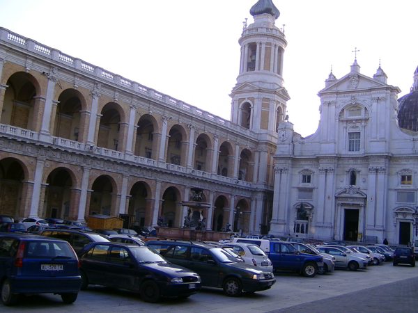 Ma si vedono elementi architettonici anche molto più antichi, gotici e rinascimentali; infatti il culto della Santa Casa principiò in queste terre Marchigiane, ma anche al di là dell'Adriatico nell'Illiria medievale, già nel 1200, ai tempi delle crociate. L'interno della Basilica è grandioso nell'insieme, e prezioso nelle singole parti, con opere d'arte ed affreschi dei maggiori artisti dell'epoca rinascimentale. Fu letto il tratto del Vangelo di Giovanni che racconta la vicenda del cieco nato guarito da Gesù. Diversi antichi confessionali sono approntati per i pellegrini, su cui furono applicate insegne atte a smistare i pellegrini a seconda della loro lingua: alcuni sono infatti "pro Illyricis", presumo riservato a chi parla la lingua croata, o albanese. Sul crinale nord della cittadella di Loreto ci sono tante altre cose, fra cui il cimitero militare dei polacchi caduti combattendo a fianco degli angloamericani nel secondo conflitto mondiale. E una massiccia scultura del Papa Giovanni XXIII, che con la sua mole troneggia sulla valle sottostante.