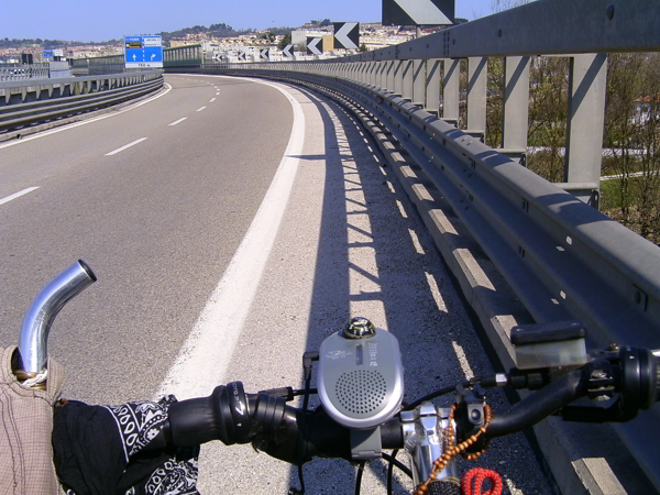Sono finalmente arrivato al punto più alto del viadotto; dopo aver pedalato al di sotto di via Allende, la via sembra felicemente in discesa, il sudore secreto da un'ora si asciuga tutto nella discesa come con un asciugacapelli posizionato sul turbo.