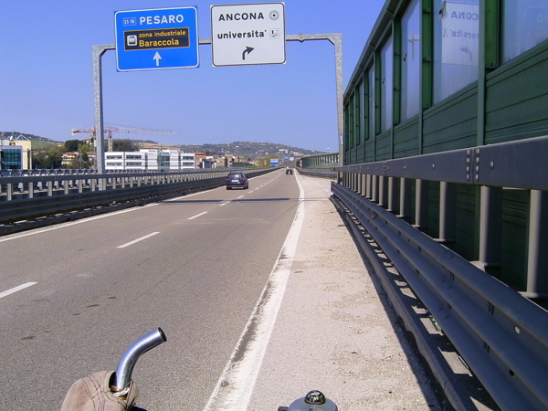 Sono giunto presso un grosso snodo autostradale, e lì ho preso a destra seguendo le indicazioni per Ancona.