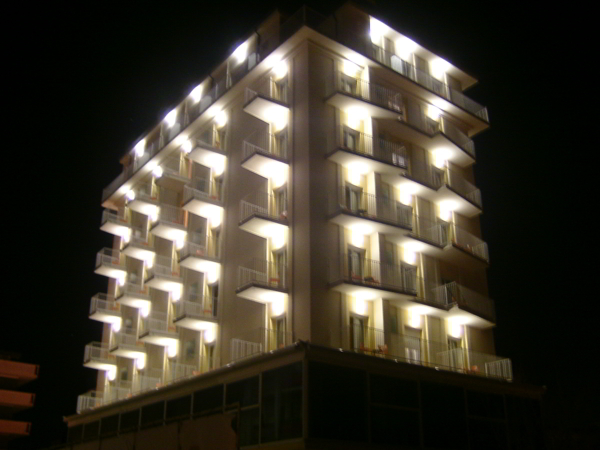 ...e poco distante un palazzo-hotel sbiancato come una gigantesca cappella sepolcrale, simile ad un complesso di arnie per api notturne.
