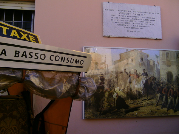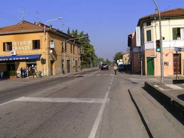 E presto ero giunto ad un centro abitato ove una grande scritta dipinta sul muro di un edificio, evidentemente un esercizio gastronomico, recitava "Osteria Grande". Alchè mi hanno telefonato i ragazzi di Primavera Urbana, che mi attendevano a Bologna: "Dove sei ora?" "Sono di fronte all'Osteria Grande" ho detto, ma solo mezz'ora dopo mi sono reso conto che quello era il nome del paese e non dell'edificio. Che nome bizzarro per una cittadina!