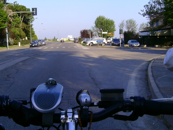 Ero dunque nuovamente in marcia, molto lentamente, lungo la via Emilia, mentre alle 8 e mezza già faceva caldo. Un'insegna mi indirizzava al paese di Medicina, che prima o poi forse varrebbe la pena di visitare.