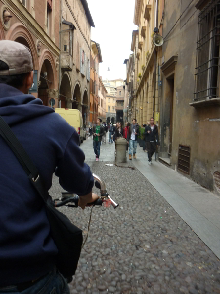 Durante queste giornate di relativo rilassamento dopo il lungo viaggio, la mia occupazione principale è stata di pedalare in risciò per il centro storico, che è piuttosto grande, portando di qua e di là chiunque volesse e non pretendendo alcuna ricompensa, salvo informando i passeggeri bolognesi ce ancora non lo avessero saputo, che con le eventuali offerte dei trasporti in risciò si mettono da parte i soldi nella cassa dell'associazione per comprare nuovi veicoli dello stesso genere.